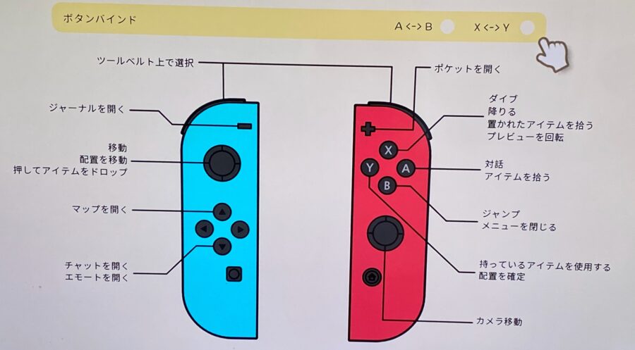 • Xボタン: ダイブ /置かれたアイテムを拾う